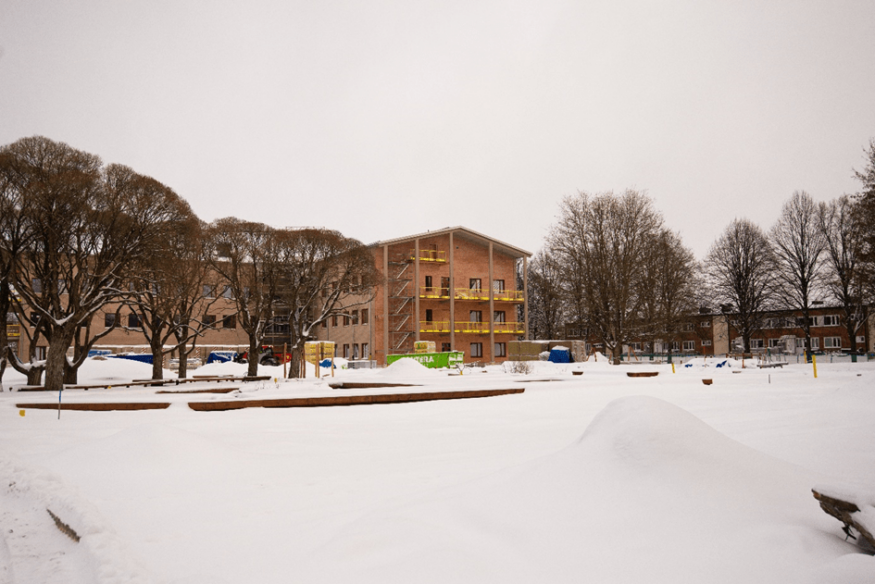 På Kvarngärdet i Uppsala börjar ett nytt grundskolecampus ta form. På den gamla skoltomten växer tre byggnader fram som ska ge plats för Uppsalas största grundskola med 990 elever samt två idrottshallar, lokaler för fritidsklubb och matsal.