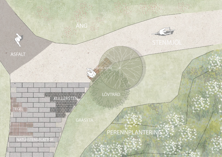 Material- och växtval kan därför ta vara på en plats kvaliteter och befintliga värden som utgångspunkt i en ny gestaltning. Materialval kan också styra hur platsen används eller omskapas till något helt nytt. Till exempel kan vild natur tas in till staden för att skapa gröna oaser och förbättra mikroklimatet på en plats och med hjälp av markmaterial kan vi till exempel signalera övergången från en gångväg till en trafikerad bilväg.