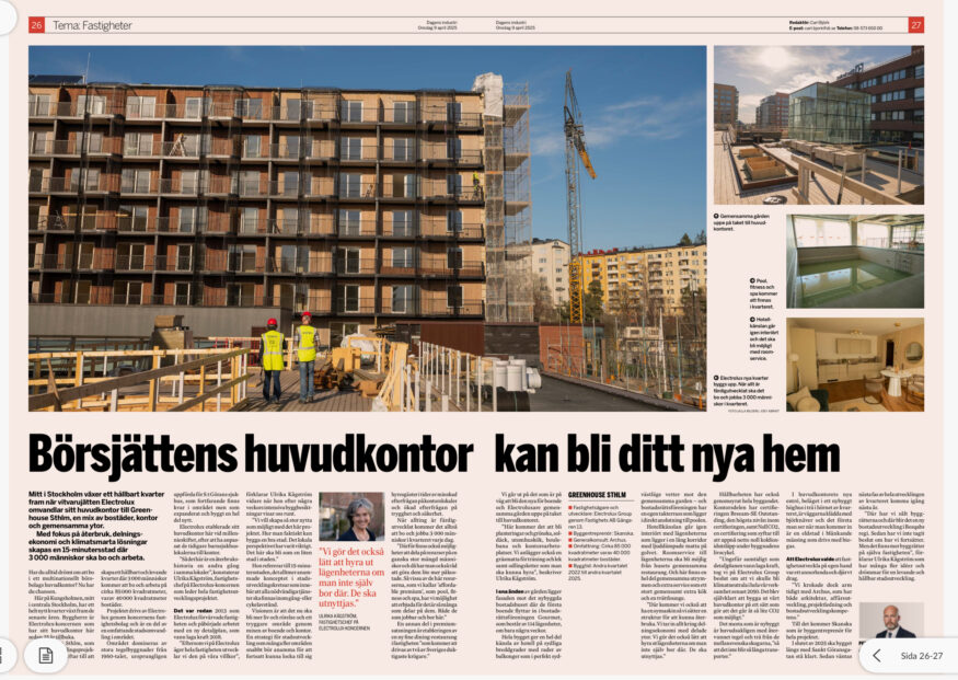 Greenhouse Sthlm, omnämns i Dagens Industri