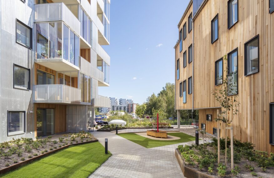 Längst ut mot vattnet vid Notuddskajen ligger detta bostadskvarter med ett formspråk inspirerat av enkla hamnskjul och magasinsbyggnader. Peabs ambition med bostäderna i kvarteret var att det skulle särskilja sig från standardproduktionen och gå ett steg längre i utformning och innehåll.