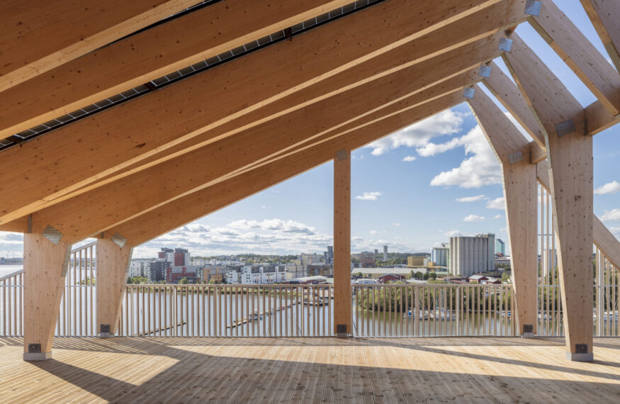 Läget i ett hamnområde och mittemot ångkraftverket gjorde att det kändes naturligt att anknyta till de enkla nyttobyggnader som fanns i dessa miljöer. Det industriella arvet har därför i bostadshusen översatts till obehandlade fasadmaterial som kommer att förändras och få en patina med tiden – obehandlat cederträ och sinuskorrugerad galvaniserad plåt. Fasadmaterialet fortsätter upp på det branta takfallet på de asymmetriska sadeltaken medan de flackare takytorna har sedumtak. Både träpanelen och plåten återkommer i halvtransparent version i skärmar och balkongräcken. Invändigt har lägenheterna fått hög takhöjd och ”loft living”-karaktär. Alla lägenheter har både en öppen balkong och inglasat orangeri som kan öppnas upp helt mot balkongen. Längst upp i det högre huset finns ett stort gemensamt växthus och takterrass med utsikt över hamnen och Notuddsparken.