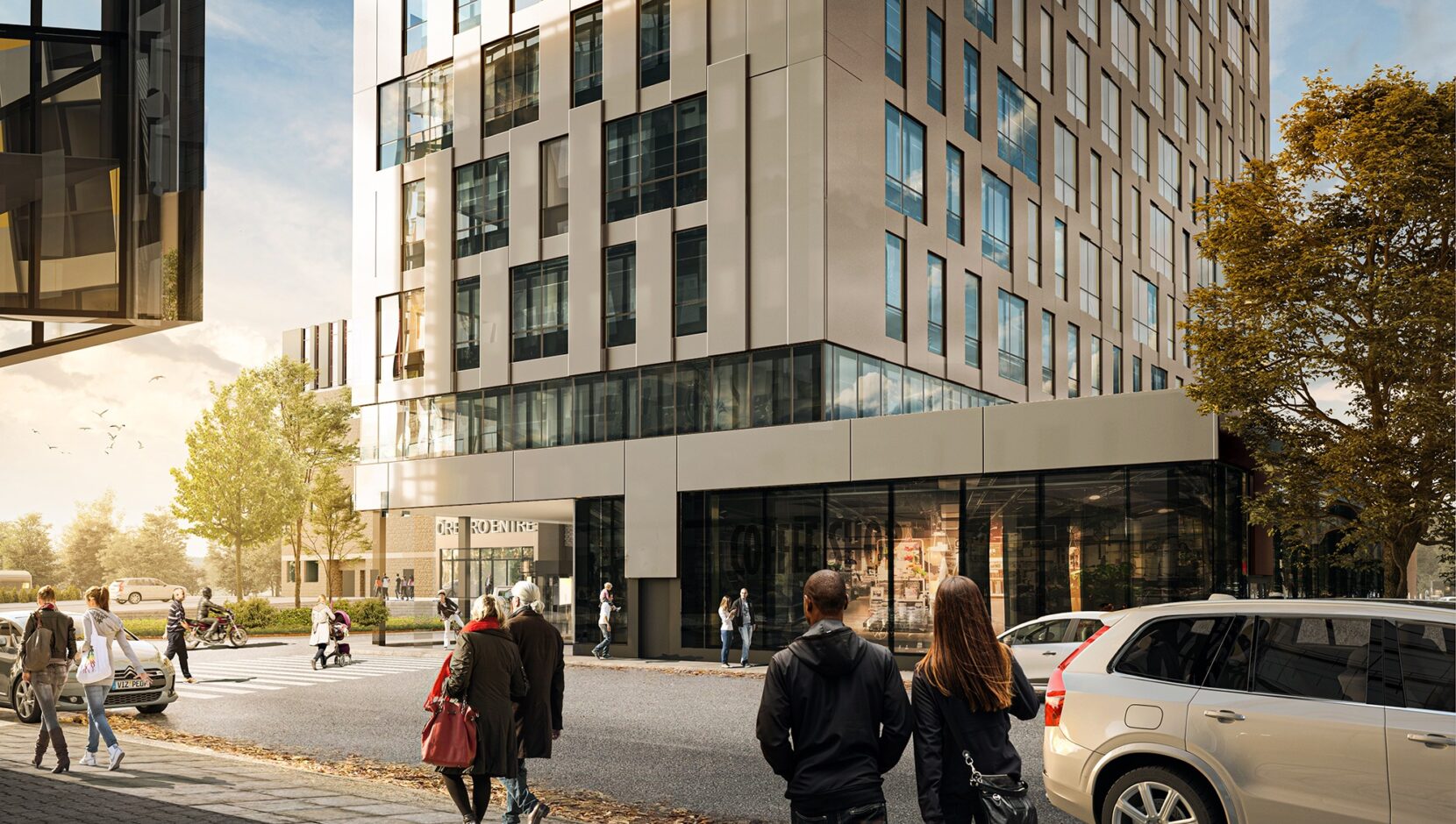 Detta projekt har engagerat flera av Archus kompetenser. Våra arkitekter har designat byggnaden i sin helhet och tagit fram handlingar inför bygglov, medan våra landskapasarkitekter har skapat utemiljön. Illustratörer har också tagit fram projektets illustrationsbilder. Parallellt har Archus projektlett genom att ta fram förfrågningsunderlag och hjälpt till med upphandling av byggentreprenör. I dagsläget är Archus aktivt involverade som projektledare och byggledare för projektet som kommer att resultera i ett 14 våningar högt hus. Nio av dessa kommer att vara hotell och resterande fem kontor.
