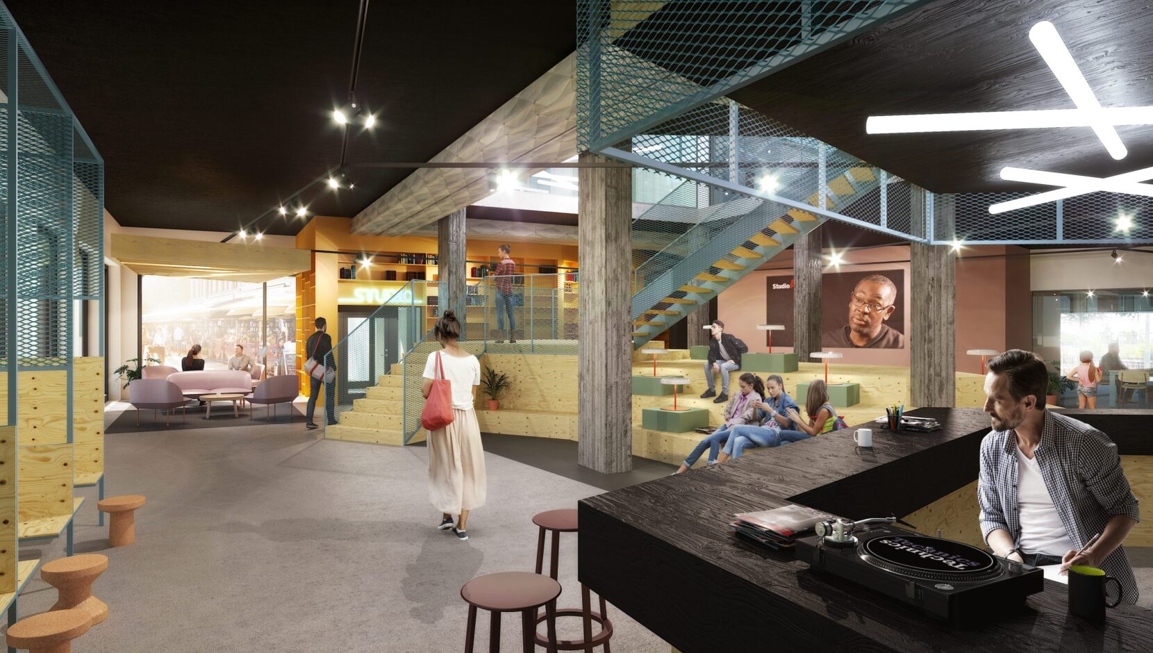 En unik verksamhet kräver en unik lösning. Alla lokalens ytor blev multifunktionella för att kunna inrymma allt vad kunden önskade. Det skapades inte bara ett hus med mycket interaktion, utan gav också det gamla bankkontoret puls. Verksamhetens olika funktioner har flätats samman för att ge möjlighet till spännande utbyten. Uttrycket blev dessutom kaxigt och tydligt där det märks att man kliver in i en helt ny värld.
