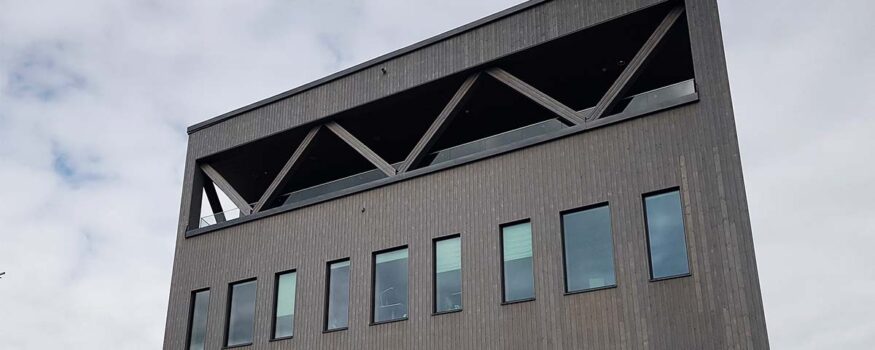 Alla ingående material är granskade för bästa miljöegenskaper. Exempelvis är yttertaket på lagerbyggnaden täckt av olivin, en sten som reducerar koldioxid. Fasaden är i laserad furu från Moelven och kommer att åldras vackert, som det naturmaterial det är.